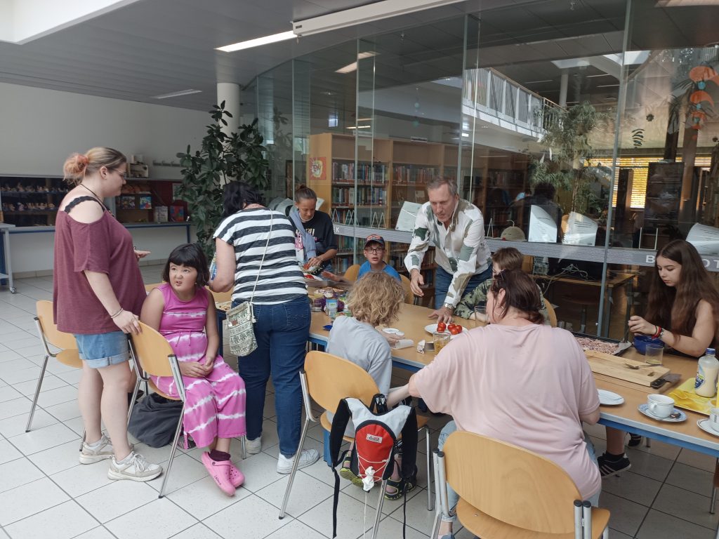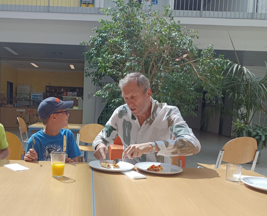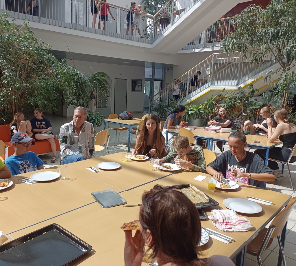 Am Dienstag, den 25. Juni besuchten uns die Schüler*innen aus der Sonderschule St. Isidor, nachdem wir sie im Mai besucht hatten. Wir zeigten ihnen unsere Schule und buken gemeinsam Pizza. Den Kindern und Jugendlichen gefiel es sehr gut, manche wollten auch hier bleiben. Sie mussten dann leider wieder fahren, aber wir werden im Oktober gemeinsam einen Ausflug machen – darauf freuen wir uns!