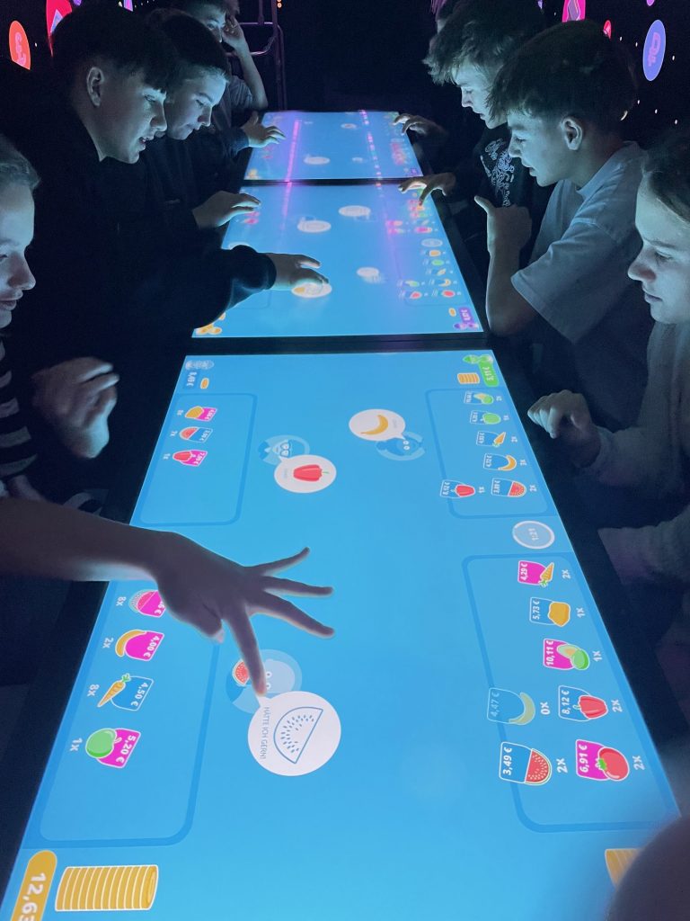 Diese Stationen sind interaktive Stationen zu Angebot – Nachfrage, Zinswesen, Berufe und Verdienst, usw.