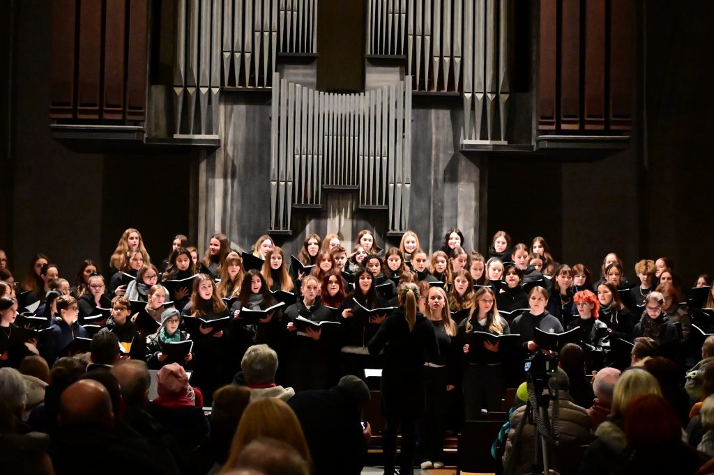 Vor allem aber wurden über die letzten Wochen viele Songs einstudiert. Vom mittelalterlichen „Veni, veni Emmanuel“ bis hin zu „Baby, it’s cold outside“, welches das Publikum ins Amerika des mittleren 20. Jahrhunderts entführte, war dieses Jahr wieder eine große Vielfalt an Weihnachts- und Winterliedern zu hören. Es fehlte nur, nach „Chört so“-Tradition, ein afrikanisches Lied. Am direkt aufs Konzert folgenden Sonntagvormittag durften wir auch einige unserer Stücke während der Familienmesse zum Besten geben. Beide Auftritte erhielten sehr positive Rückmeldungen von der Zuhörerschaft.