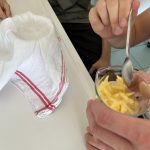 Zuerst haben wir die Kartoffeln geschält und fein gerieben. Danach haben wir die Kartoffelstücke ausgepresst, um die Stärke zu gewinnen, diese ist die perfekte Basis für unser Experiment.