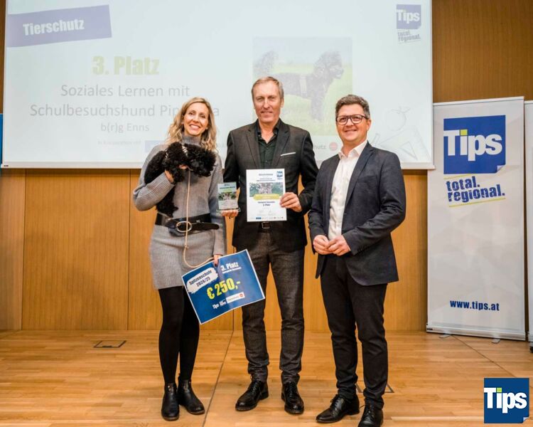 Die Tips-Aktion „Spitzenschule“ sucht jedes Jahr die engagiertesten Schulen Oberösterreichs. Mit dem Projekt „Schulbesuchshund Pippilotta im Sozialen Lernen“ nahmen wir heuer in der Kategorie „Tierschutz“ teil und holten mit der Einreichung den 3. Platz.