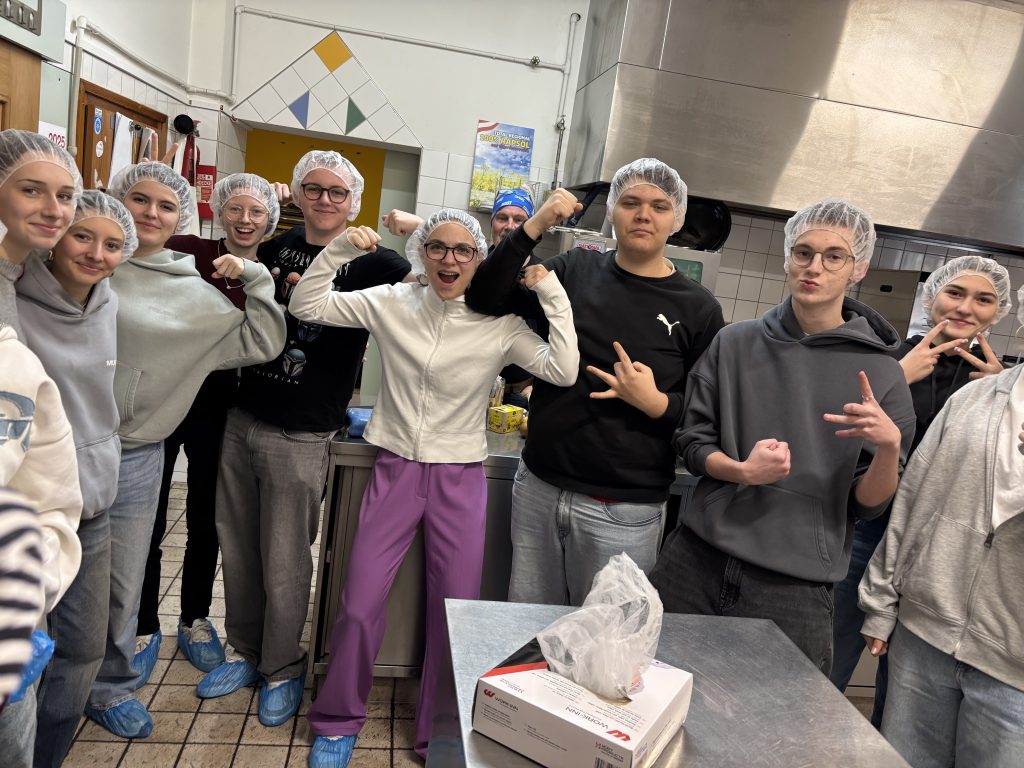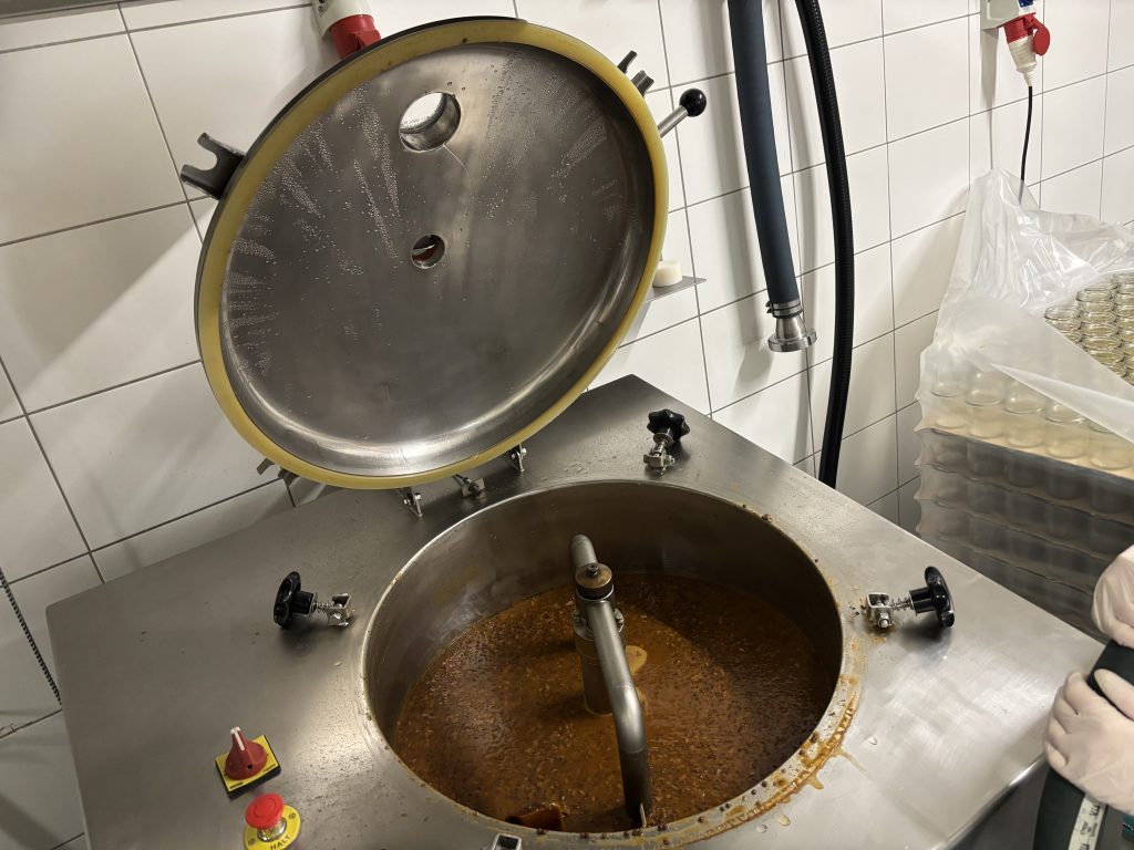 Nachdem wir eine Einführung zu den Herausforderungen in der Lebensmittelbranche von Geschäftsführer Andreas Windner bekommen hatten, konnten wir zusehen, wie der duftende Linseneintopf im riesigen Kochtopf zubereitet wurde, und durften helfen, die fertige Hausmannskost in Gläser zu füllen und zu verpacken. Natürlich wurden die Hygienemaßnahmen eingehalten und jede*r trug ein Haarnetz und Überzieher für die Schuhe. Anschließend durfte der frisch produzierte und abgefüllte Linseneintopf noch probiert werden. Schließlich haben wir den hauseigenen Shop gestürmt und mit den gekauften Gläsern, vollgefüllt mit traditionellen Wirtshausgerichten, ging es nach einem Abstecher zum Donaupark mit dem Bus zurück nach Enns.