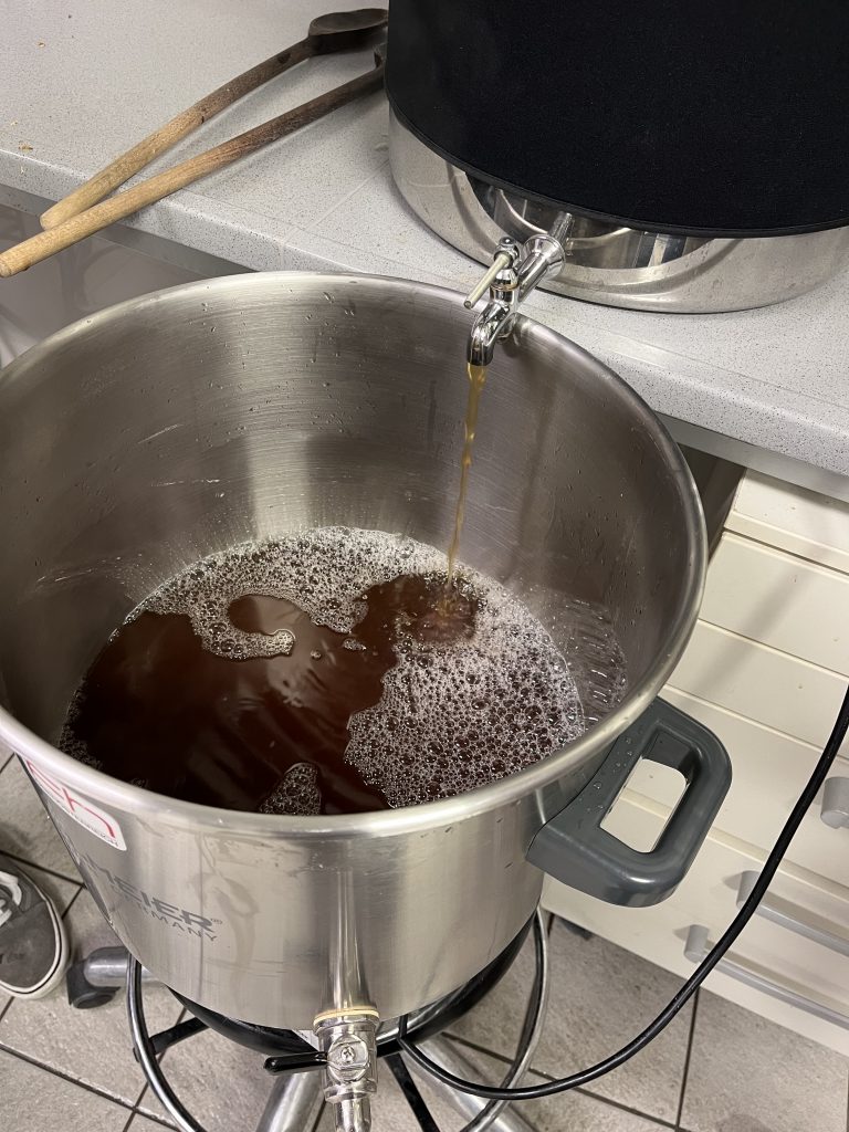 Nach dem Einmaischen und dem Läuterungsprozess konnten wir selbst die Hopfengabe bei unserem Bier durchführen. Der Gärprozess mit dem Hefestamm Fermentis SafLager W34/70 findet nun an der FH Wels ohne uns statt – hoffentlich entsteht dort ein sehr gutes Wiener Lager!