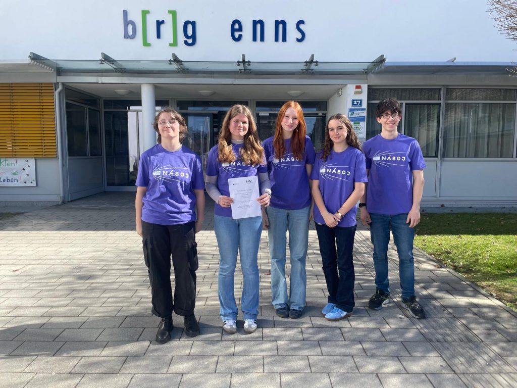 19 gelöste Aufgaben schaffte das Junior-Team des b[r]g Enns (Flora Waldhäusl, Daniela Ortner, Miriam Csillag, Julia Mühlberger, Michael Kim) am Pi-Tag auf der JKU in Linz auf diese Weise. Letizia Bräuer, Hannah Achleitner, Elena Forstner, Stella Jarošik und Lisa Hiebl bekamen es mit den schwierigeren Senior-Aufgaben zu tun. Mit 20 korrekten Lösungen erreichten sie den 2. Platz – Gratulation!
