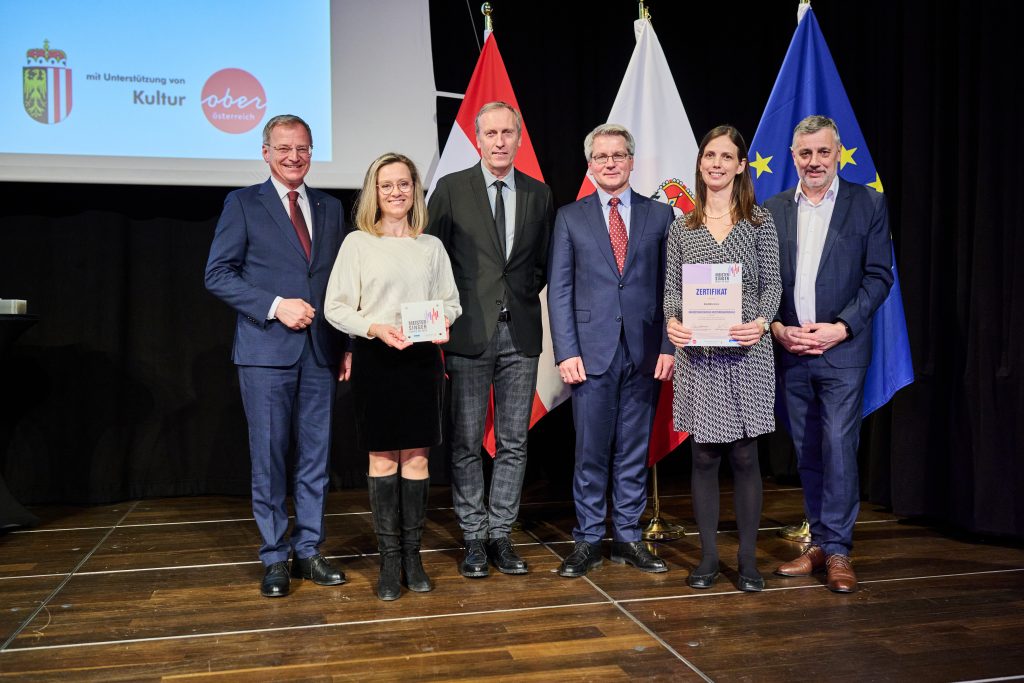 Das b[r]g Enns wurde am 2. April 2025 zum siebten Mal mit dem Gütesiegel „Meistersingerschule“ ausgezeichnet. Das Gütesiegel wurde von unseren Chorleiterinnen Dagmar Öhler und Hannah Schneeweiß sowie unserem Direktor Werner Dietl entgegengenommen.