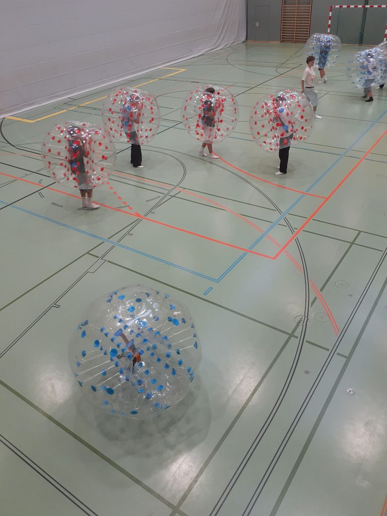 Das Schulfest 2025 stand am Freitag in der vorletzten Schulwoche auf dem Programm. Mehrere Klassen boten mit Unterstützung der Lehrkräfte kreative Spiele und Beiträge an: Kinobesuch mit Popcornverkauf, Karaoke singen, Fußballturnier, Geschicklichkeitsspiele, Escape Room, Reise nach Jerusalem, Kinderschminken, Tattoostudio und auch einen Sinnesparcours. Die Schülervertretung rundete das breite Angebot noch mit Bubble Soccer ab.